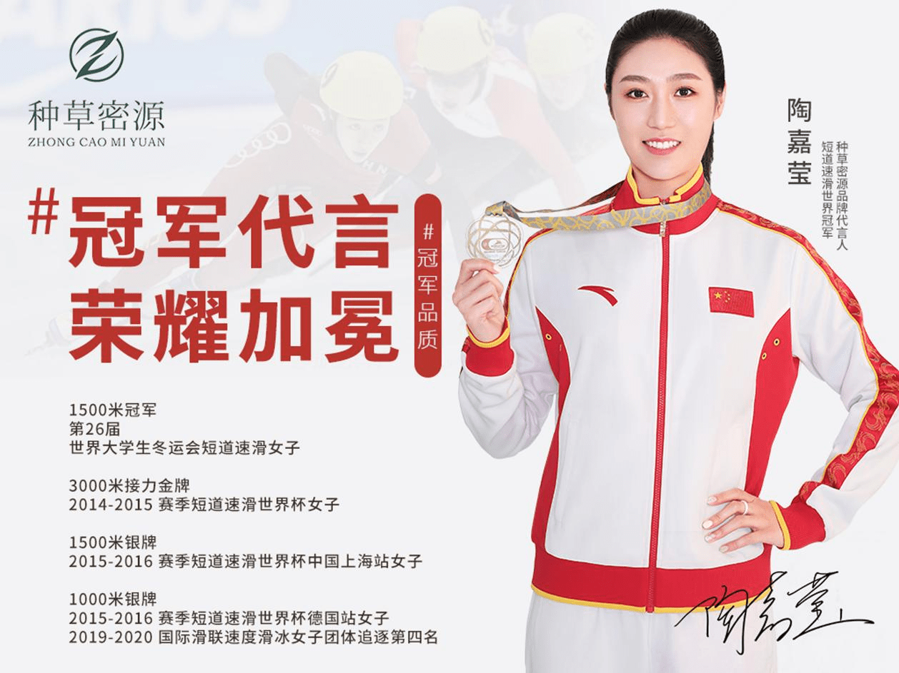 種草密源正式官宣形象代言人,她就是短道速滑世界冠軍--陶嘉瑩(明星代言公司)。