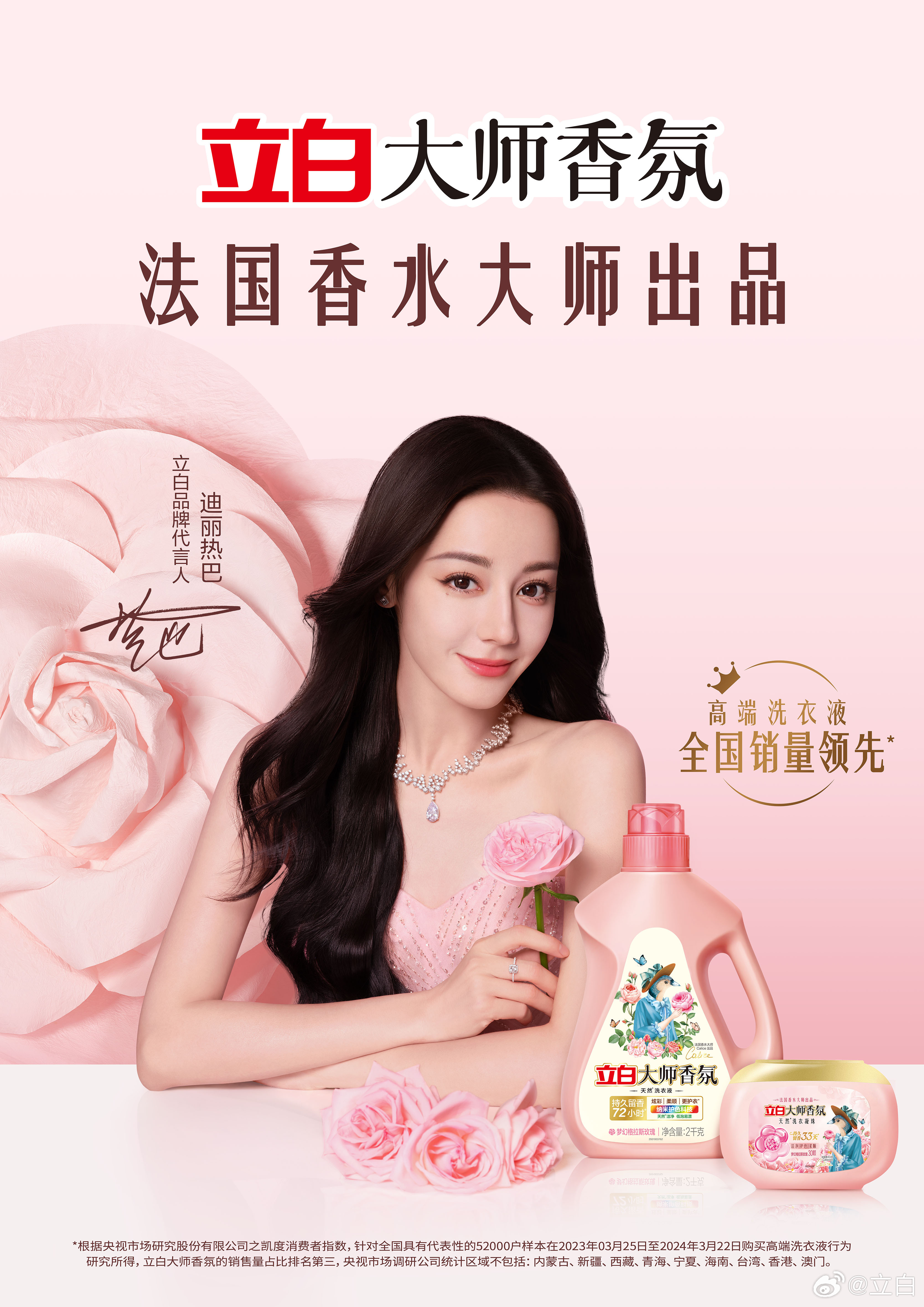 8 月 12 日,立白正式官宣迪麗熱巴(明星代言公司)為品牌代言人,同步推廣立白大師香氛系列產(chǎn)品,邀請(qǐng)消費(fèi)者一起「穿上我愛(ài)的香」。據(jù)悉,此次的香氛系列源自法國(guó)格拉斯的玫瑰香氣,讓消費(fèi)者在清潔衣物的同時(shí),感受香與時(shí)尚的無(wú)限感官之美。同時(shí),立白將一起攜手代言人探索更多時(shí)尚穿香秘訣,讓香與時(shí)尚,隨衣綻放。