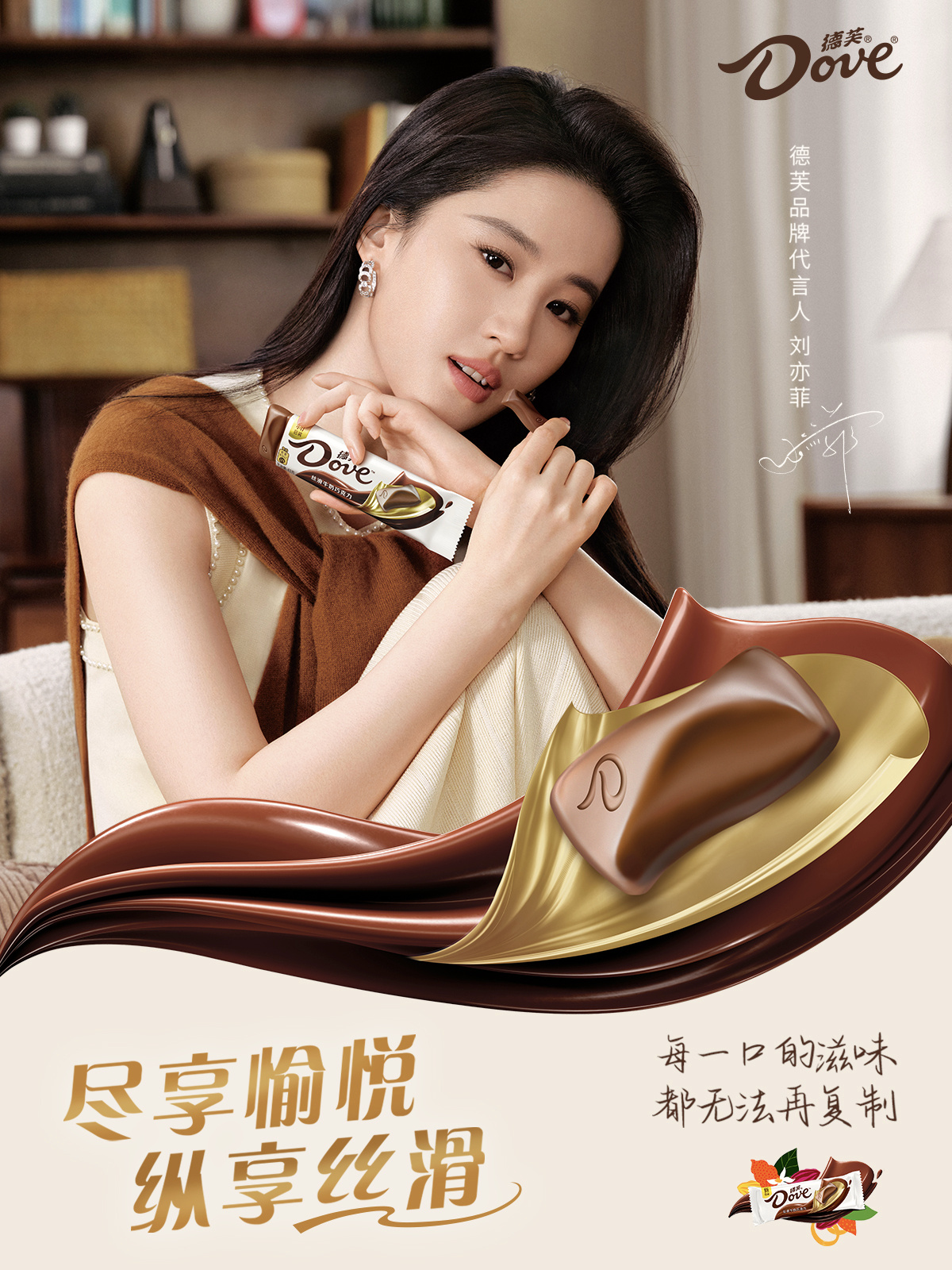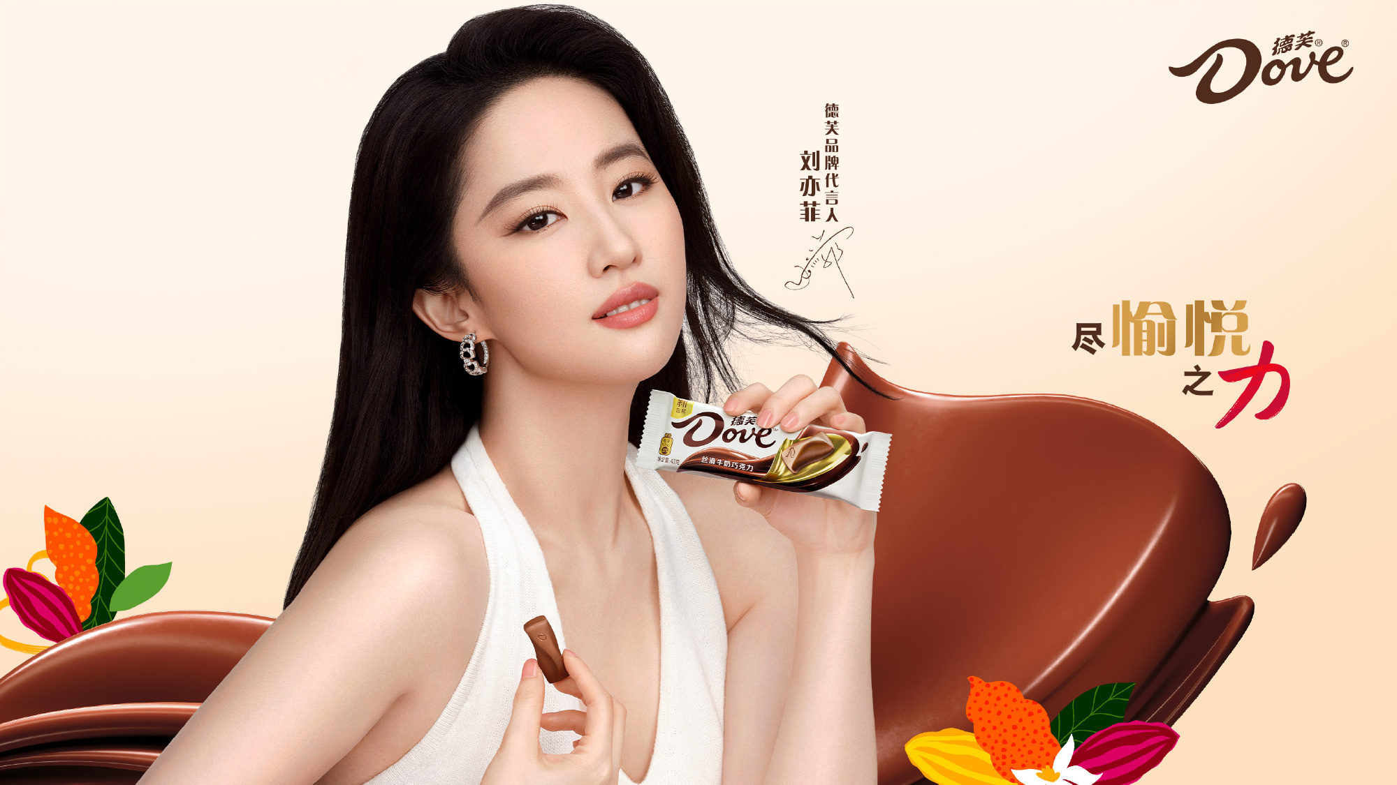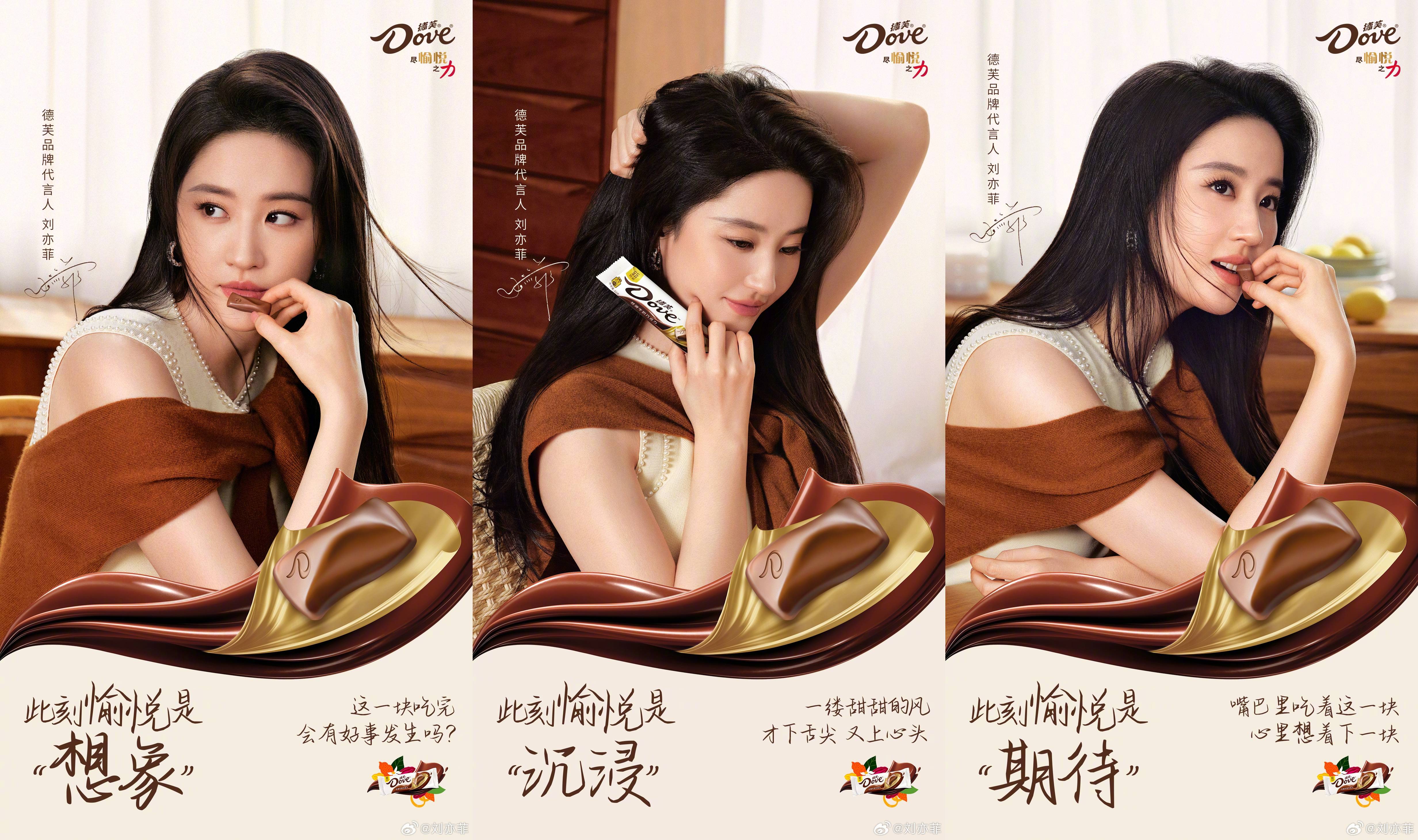 德芙官宣劉亦菲(明星經紀公司)為新晉品牌代言人。作為行走的愉悅本悅,「真實」一直是劉亦菲身上最為醒目的標簽,正是看重這份真實感,德芙選擇將劉亦菲作為德芙女孩代表,鼓勵所有人與其一同開啟真實悅己的每時每刻,悅納自己每一秒的真實情緒,縱享絲滑。