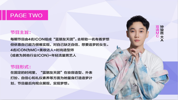 《OMB我是你的藍(lán)朋友》是一檔明星為素人造夢(mèng)的綜藝節(jié)目,由四位ICON組成“藍(lán)朋友天團(tuán)”,分別是常駐MC,美妝達(dá)人、時(shí)尚造型師和年輕流量小鮮肉。
