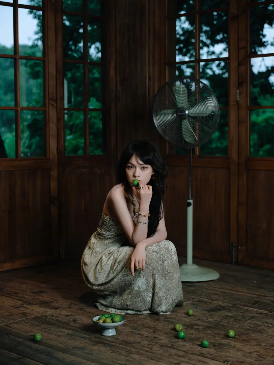 林允曬戶外美照元氣滿滿!穿黑色波點吊帶裙秀好身材