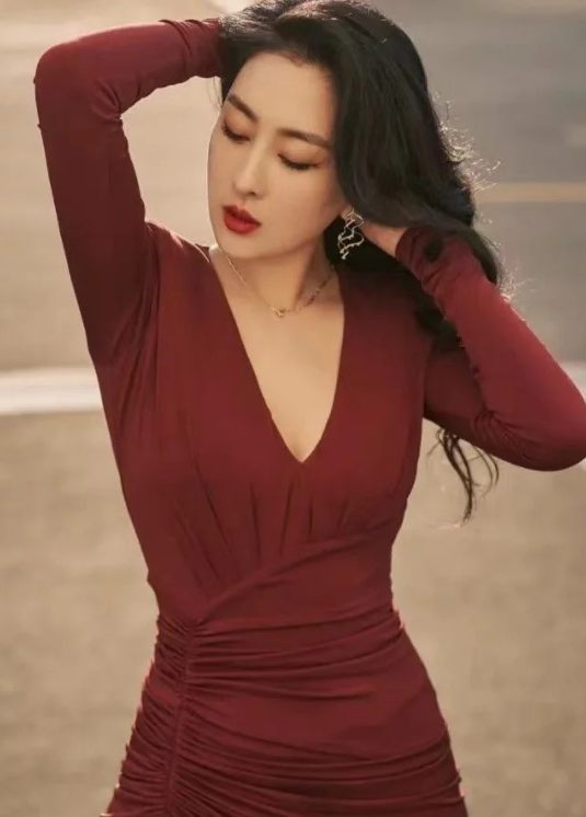 41歲馬蘇罕曬性感照,穿深V禮服小露事業(yè)線,身形纖瘦呈“S”型