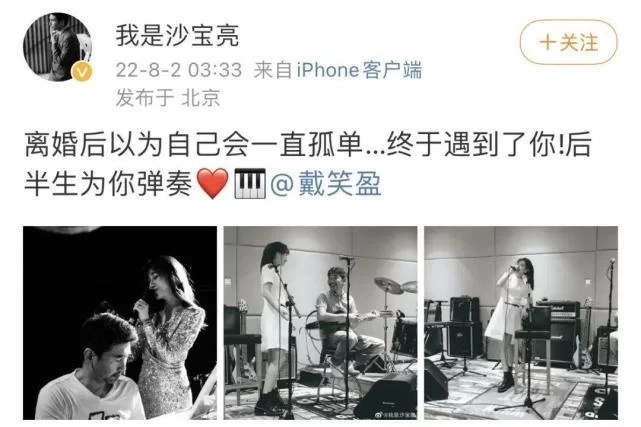 沙寶亮凌晨發(fā)文宣布與小自己16歲演員、歌手戴笑盈的戀情,文案情真意切,兩個人共享音樂時光的配圖也如同神仙眷侶。然而網(wǎng)友卻紛紛質(zhì)疑起他:什么時候離的婚?你倆當(dāng)真離婚后相遇,而不是婚內(nèi)出軌?