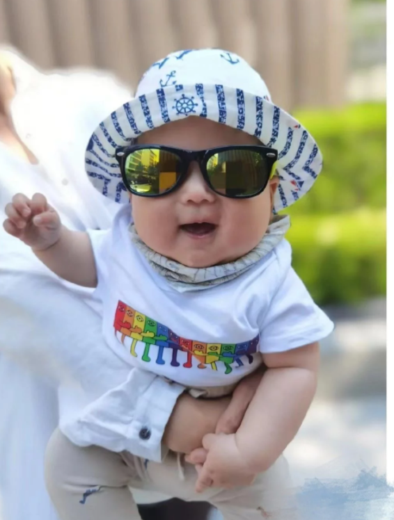 半歲大的小兒子打扮也十分帥氣,戴著墨鏡和條紋帽子,揮舞著胖嘟嘟的小手笑容燦爛,似乎比哥哥要活潑好動許多,兄弟兩個都繼承了爸爸王雷的長相,想來長大后都會成為帥哥。