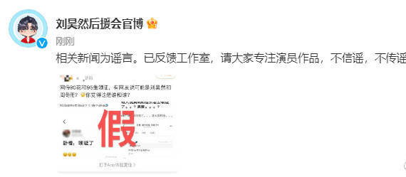 “相關新聞為謠言。已反饋工作室,請大家專注演員作品,不信謠,不傳謠。 ”
