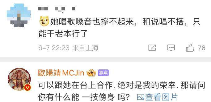 有網友評論道:“她唱歌嗓音也撐不起來,和說唱不搭,只能干老本行了。”隨后歐陽靖回懟該網友,維護歐陽娜娜:“可以跟她在臺上合作, 絕對是我的榮幸。 那請問你有什么能一技傍身 嗎?”