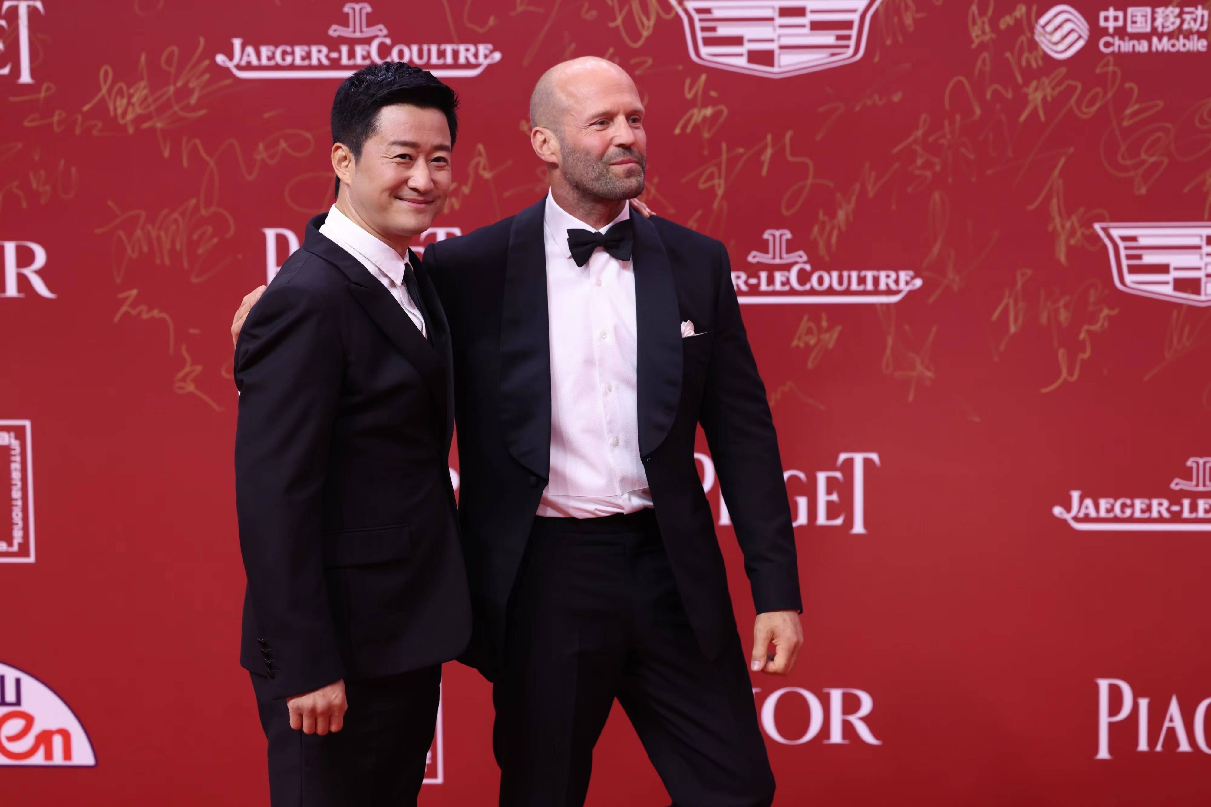 6月9日,第25屆上海國際電影節(jié)開幕,吳京(明星經(jīng)紀(jì)公司)、杰森·斯坦森等攜新片《巨齒鯊2》亮相紅毯。