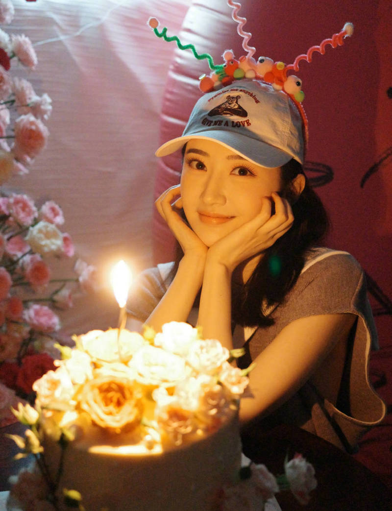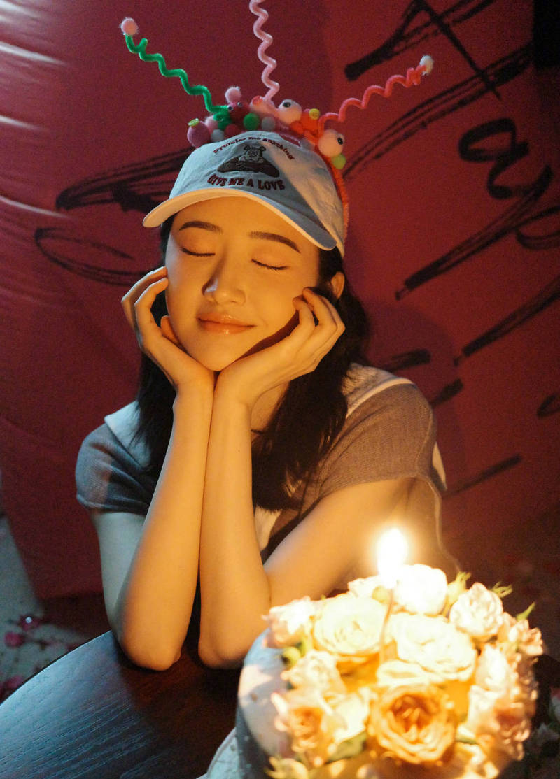 景甜曬35歲慶生照片 對蠟燭許愿溫柔甜美