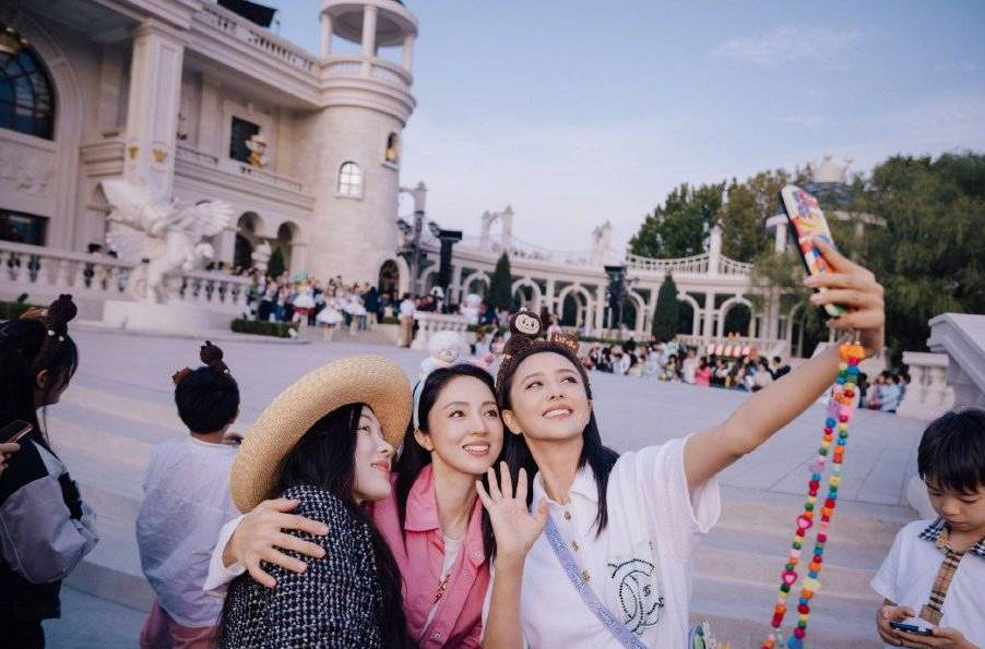 佟麗婭董璇霍思燕暢玩游樂園 親密貼貼笑容明媚
