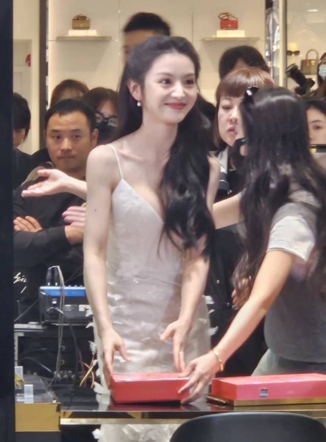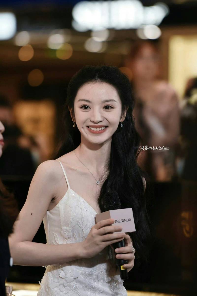 田曦薇站在人群中白到發(fā)光。