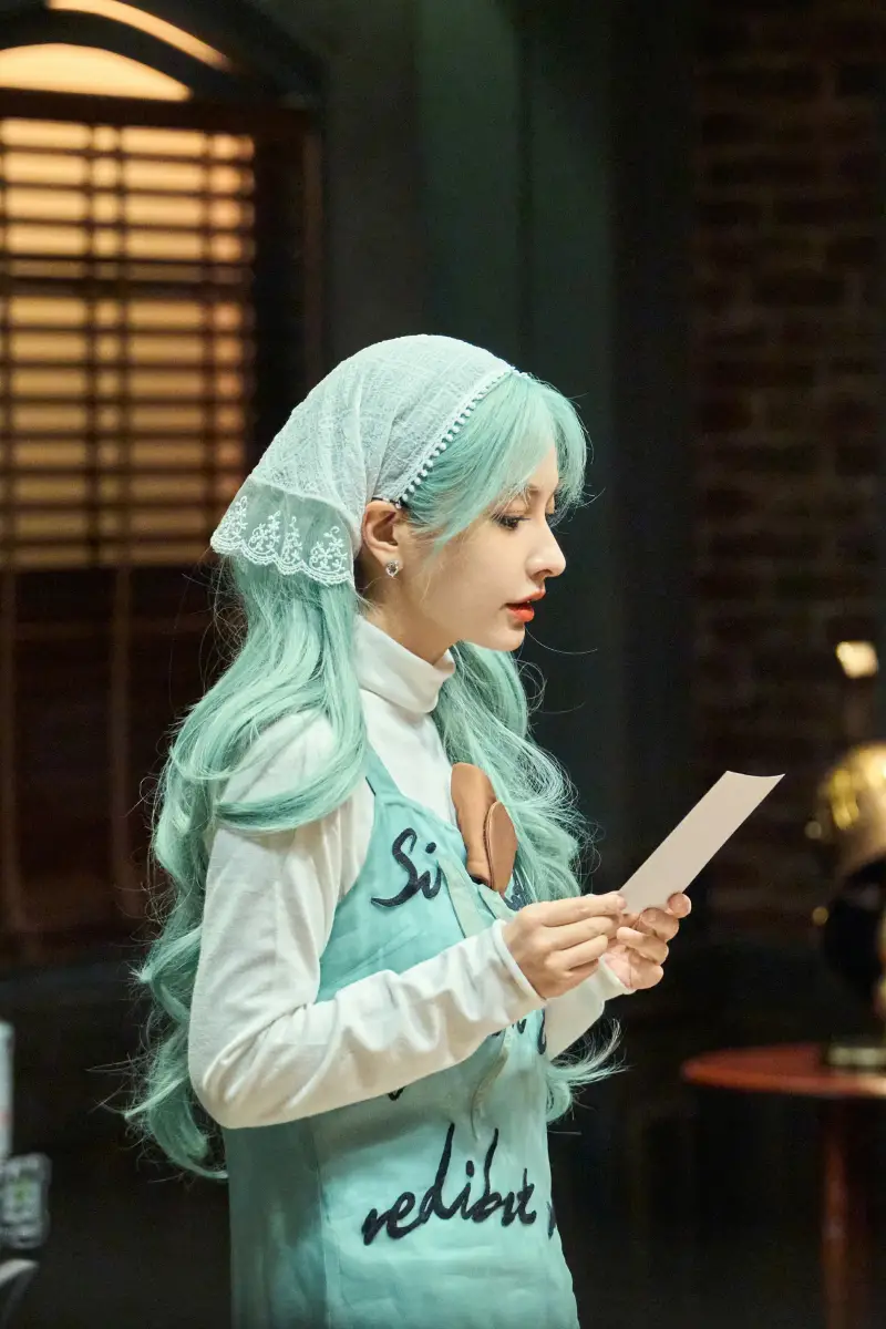 吳昕綠發(fā)精靈造型好美!手捧鮮花戴蕾絲頭巾超迷人