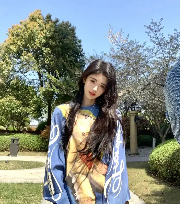 3月29日,鞠婧祎(明星經(jīng)紀(jì)公司)曬照片,穿卡通圖案藍(lán)色衛(wèi)衣,搭配牛仔背包,春意濃濃,元?dú)馐恪?/p>
