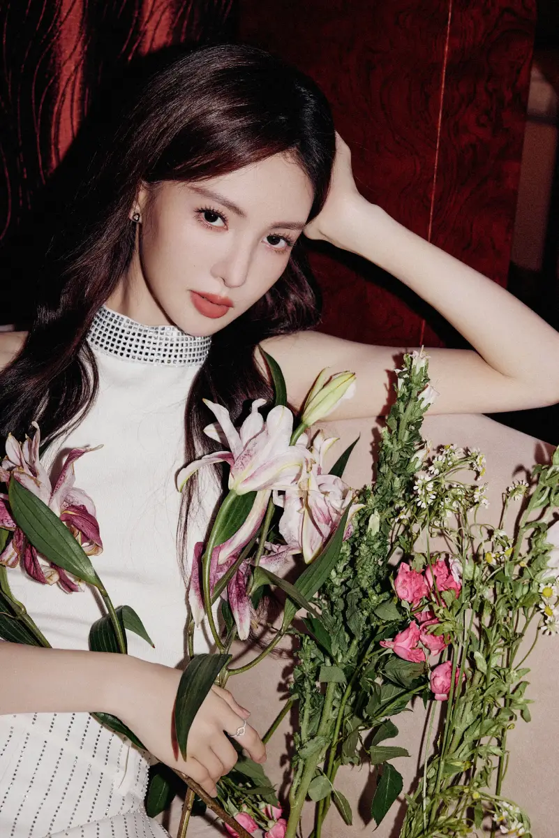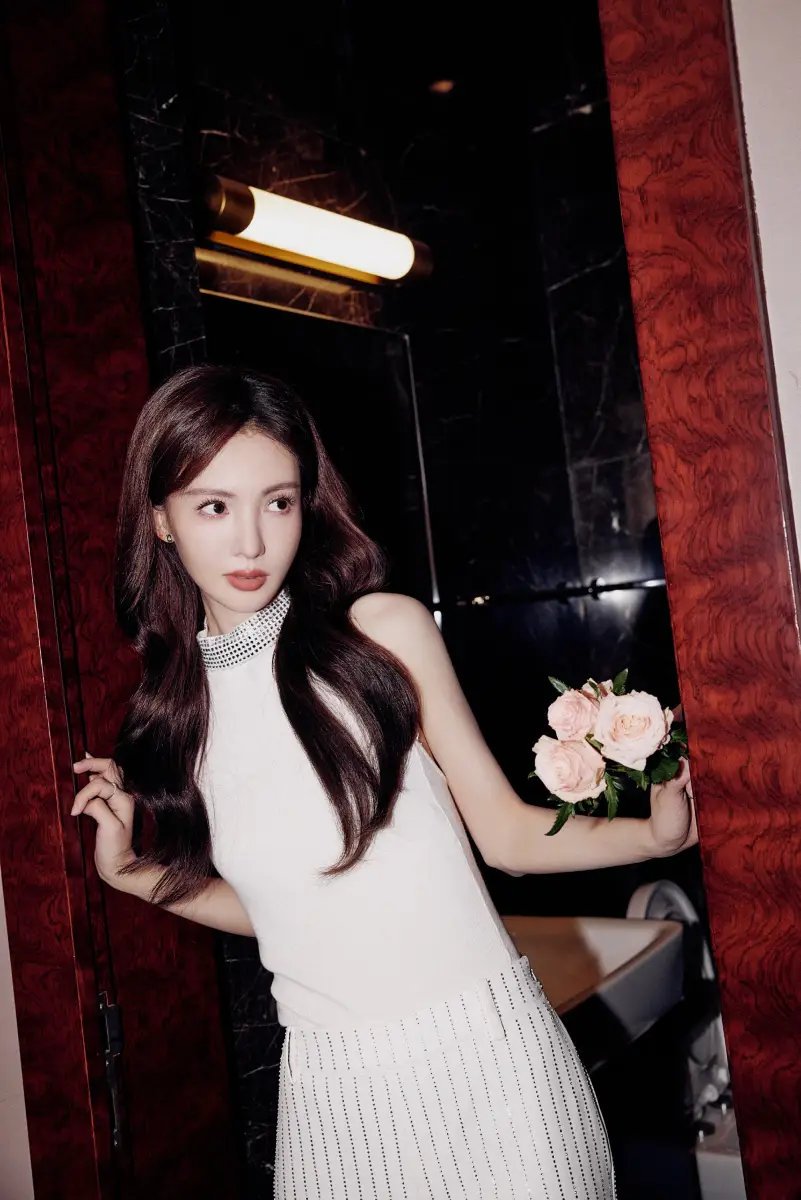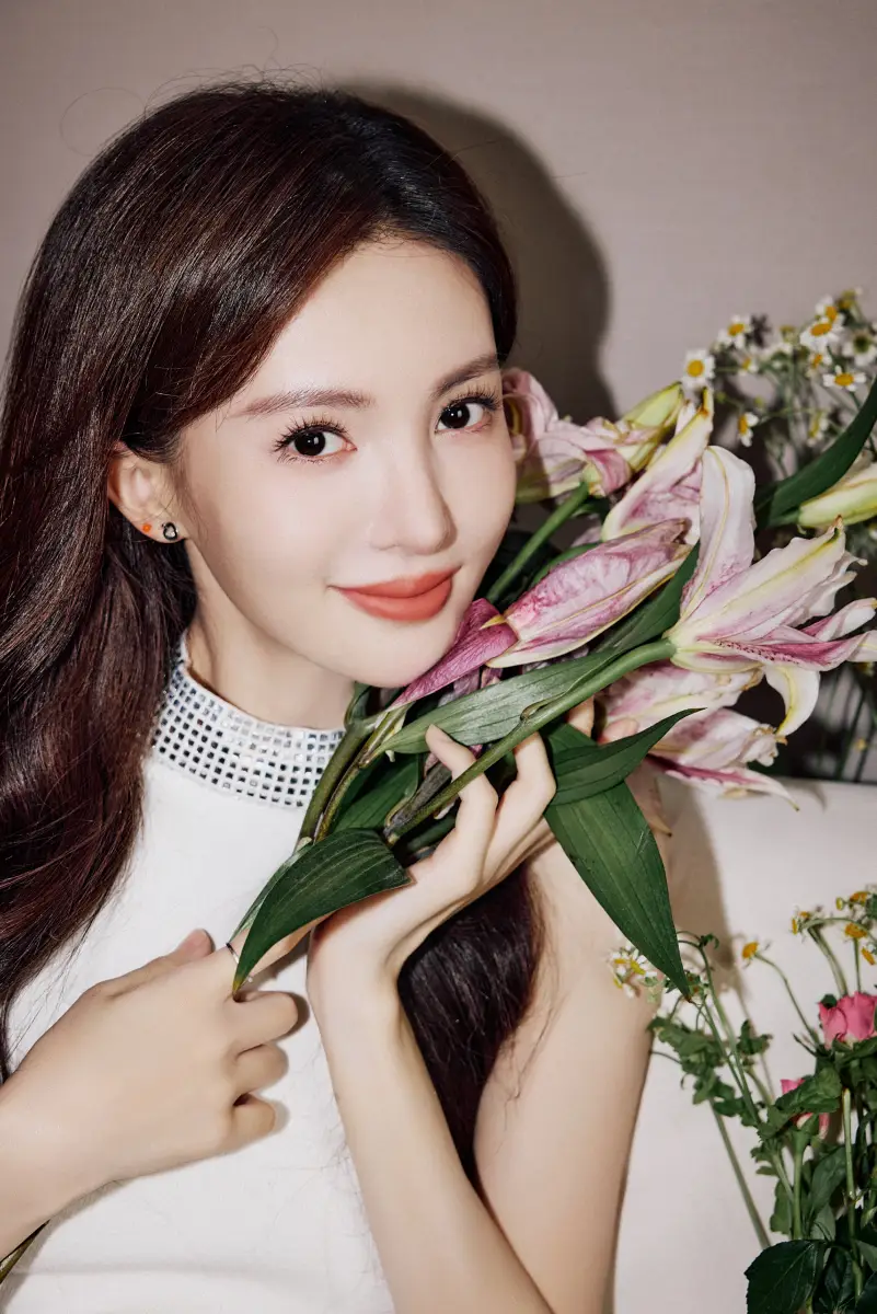 金晨純白造型簡(jiǎn)約大氣 手捧鮮花清香溢出屏幕