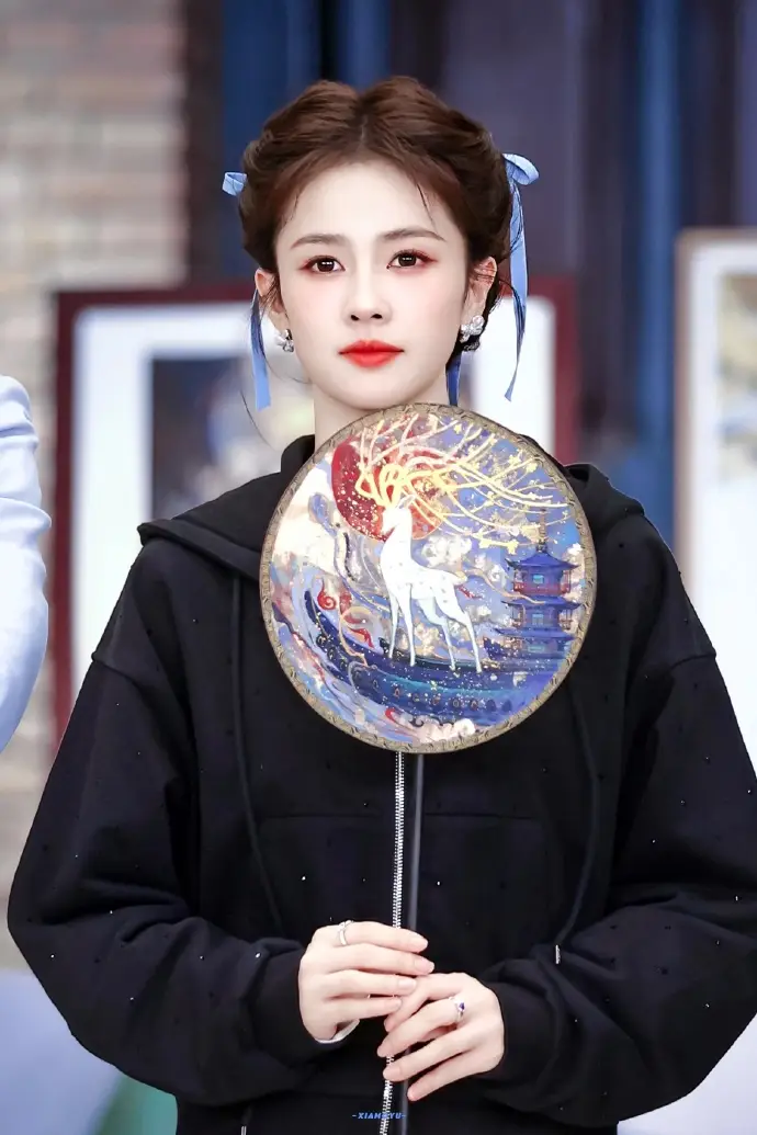 白鹿與白鹿畫作同框 梳俏皮盤發(fā)少女感滿滿