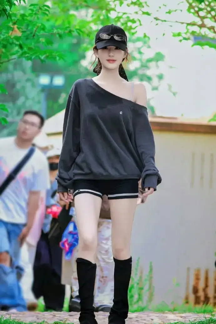 7月12日,一組趙露思(明星經(jīng)紀(jì)公司)新劇路透釋出。趙露思身穿黑衛(wèi)衣露一側(cè)香肩,下身搭配超短褲秀大長腿。