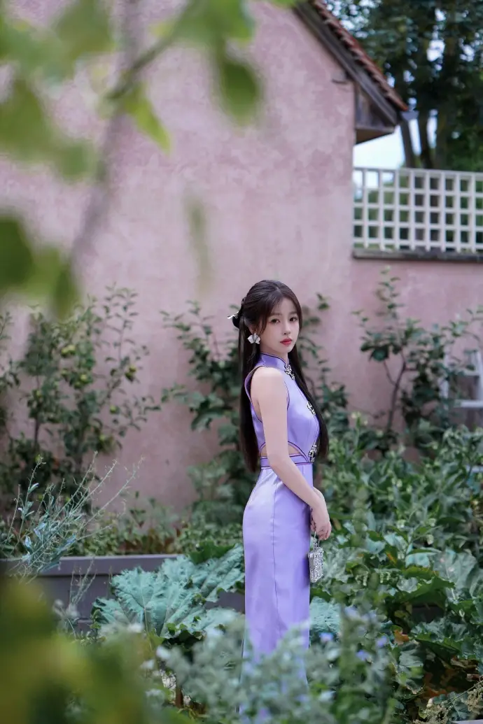 7月15日,虞書欣(明星經(jīng)紀(jì)公司)一組紫色旗袍造型寫真釋出,手提拎包身材婀娜多姿。