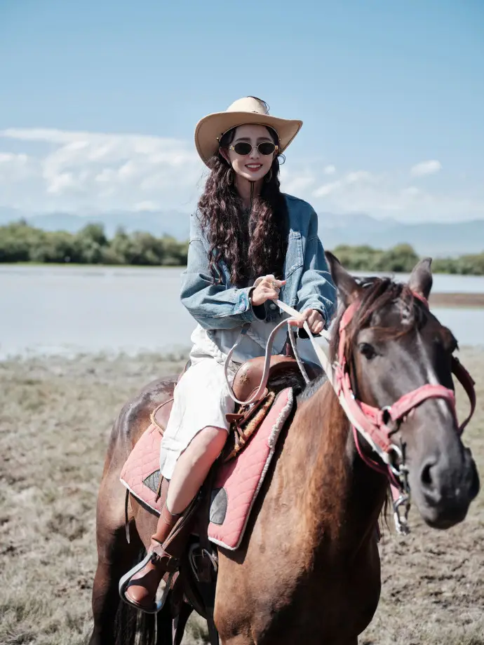 佟麗婭化身草原公主騎駿馬 頭戴牛仔帽酷颯有型