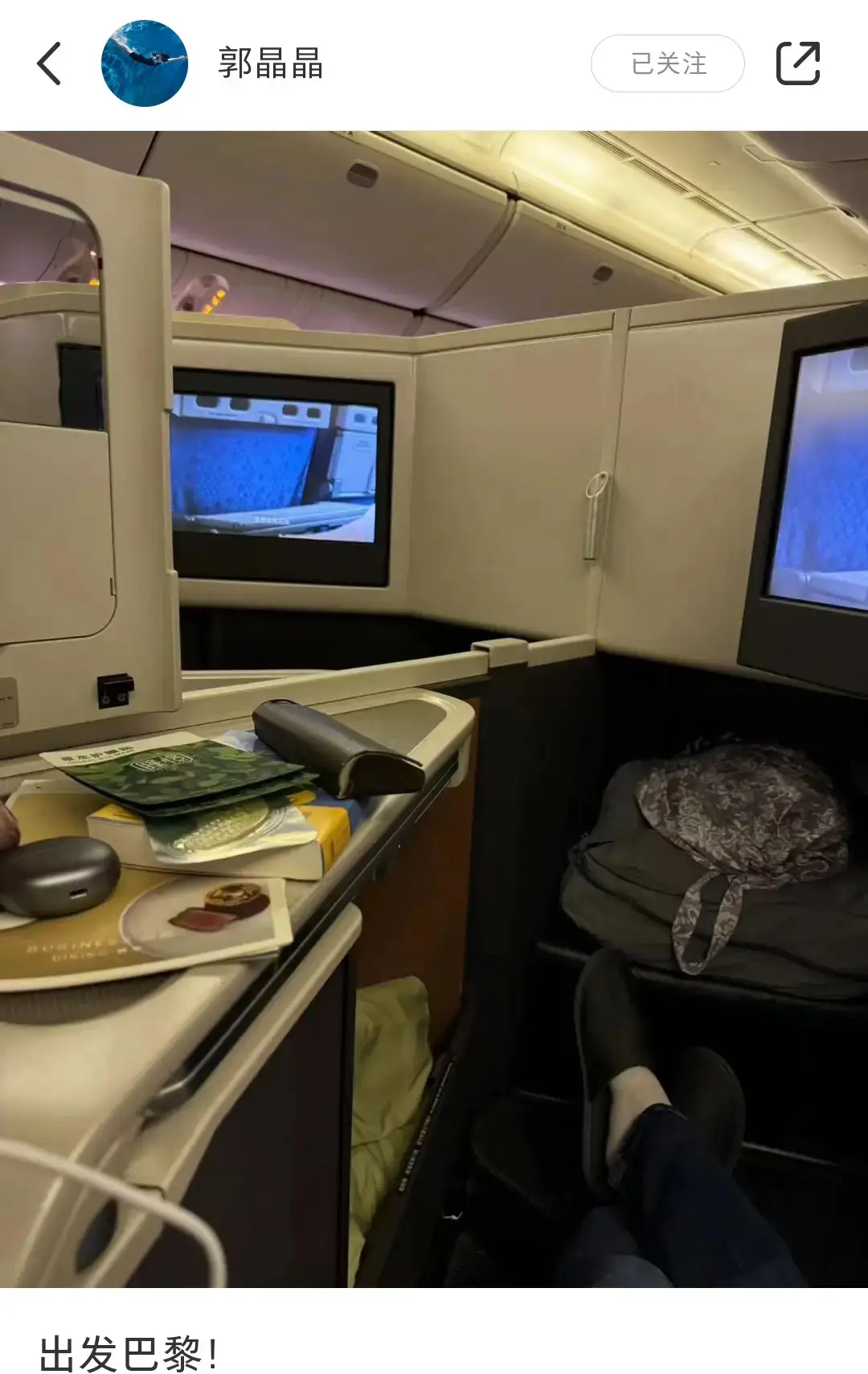 25日,郭晶晶(明星經(jīng)紀(jì)公司)在社交平臺上發(fā)文宣布“出發(fā)巴黎”,并配上了自己乘坐飛機(jī)的照片,狀態(tài)十分愜意。此前,郭晶晶在接受采訪時(shí)表示,自己會以跳水裁判的身份參與巴黎奧運(yùn)會。
