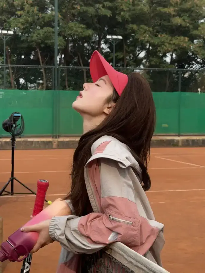 趙今麥打網(wǎng)球運(yùn)動(dòng)感十足 戴粉色遮陽帽活力四射