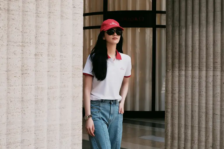 劉詩詩頭戴紅色棒球帽簡約隨性。