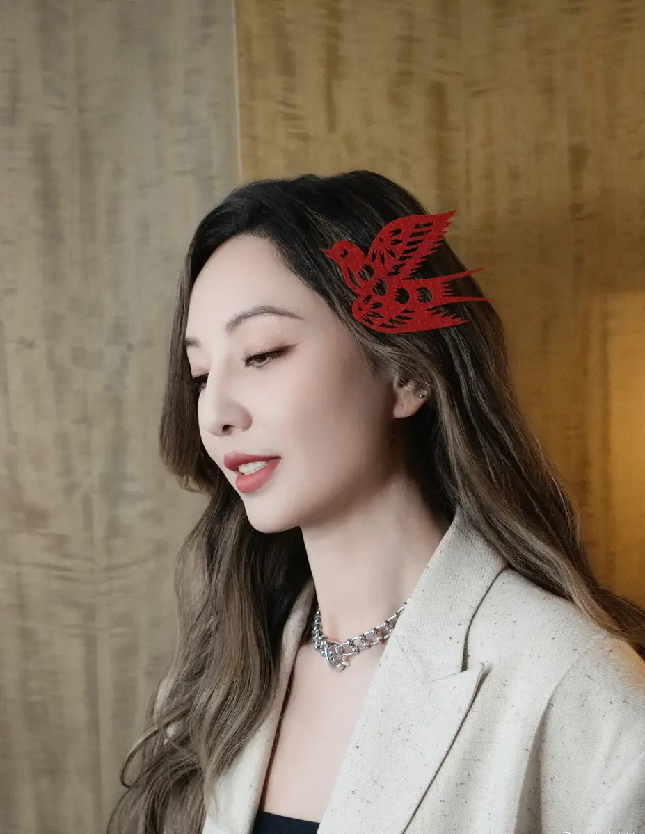 鄭希怡曬營業(yè)美照慶祝元宵節(jié) 頭戴小鳥剪紙超吸睛