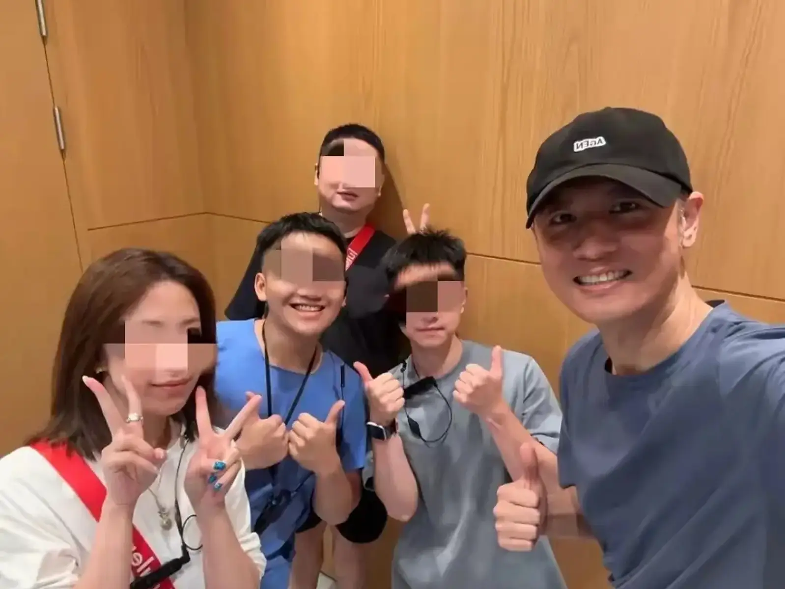 買東西被認出后,任重很熱情地和店里的員工合影。