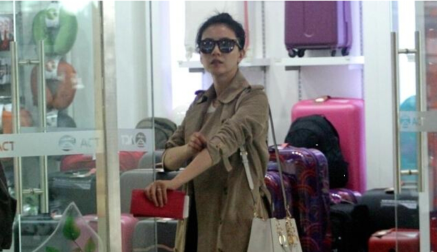 高圓圓黑超遮素顏趕機赴美 呆坐撅嘴頻賣萌