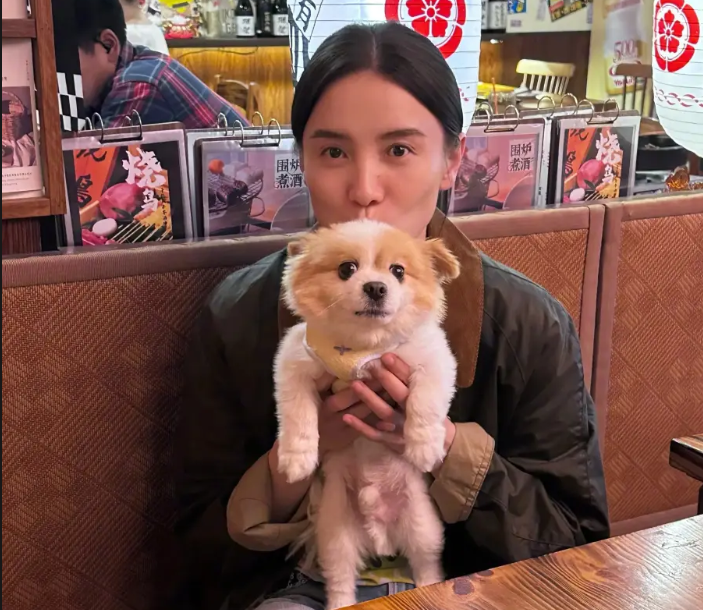 宋佳與軟萌小狗拍合照 抱在懷里又摸又親超開心