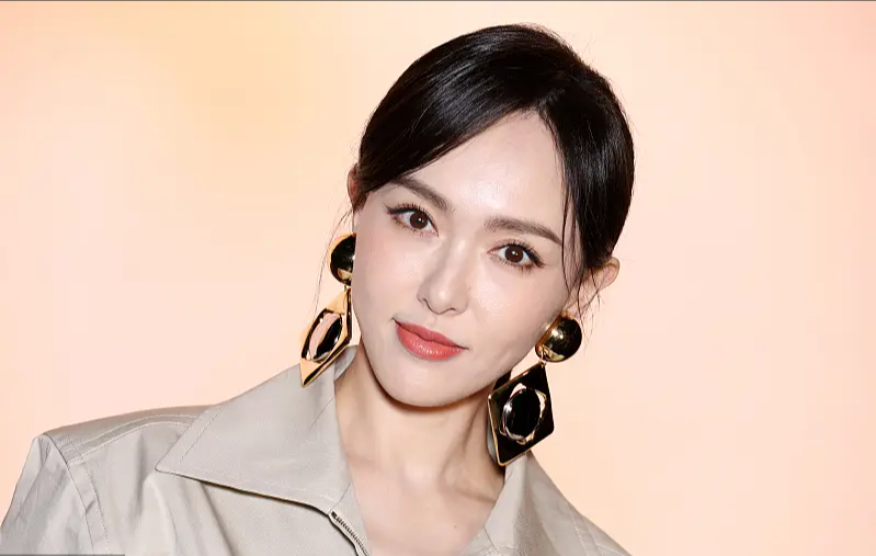 唐嫣穿米咖色連體褲比例超絕 扎低丸子頭溫柔干練