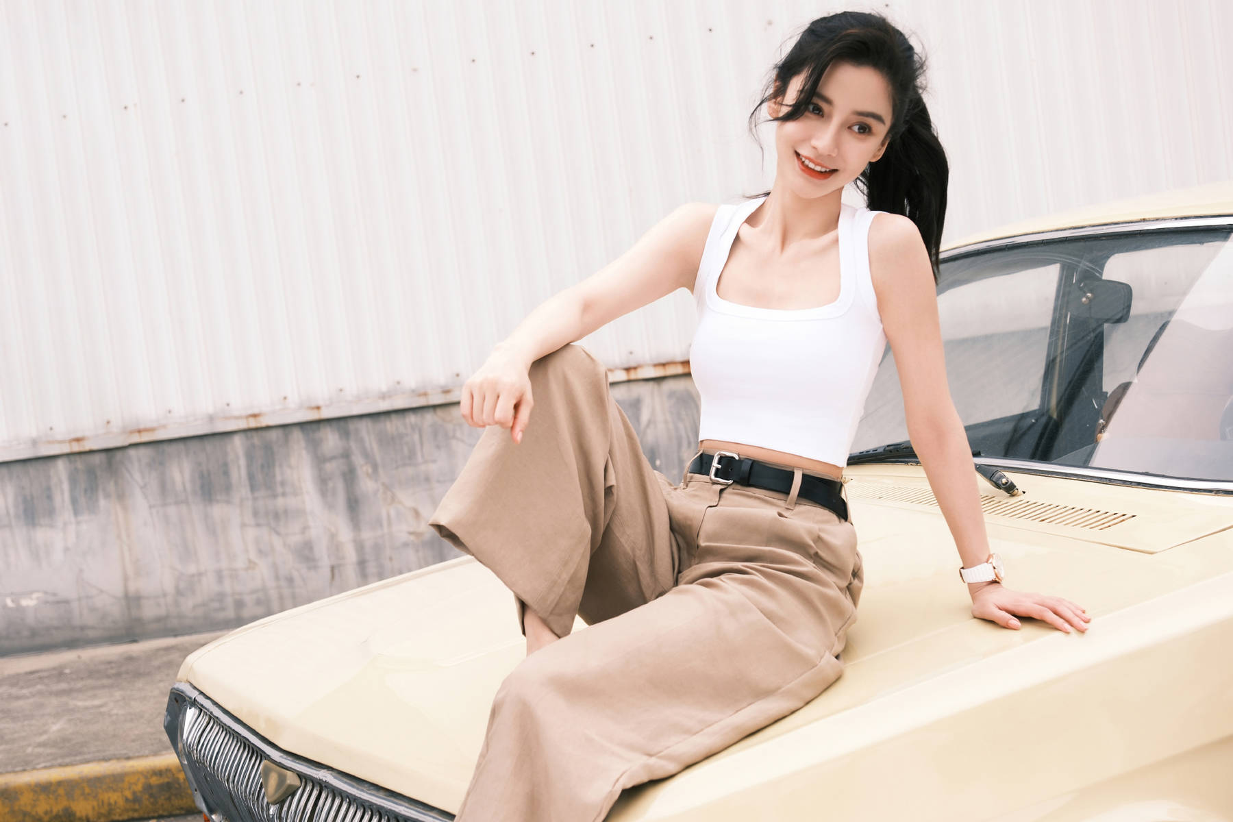 楊穎身著露腰上衣玩滑板 身材凹凸有致少女感十足