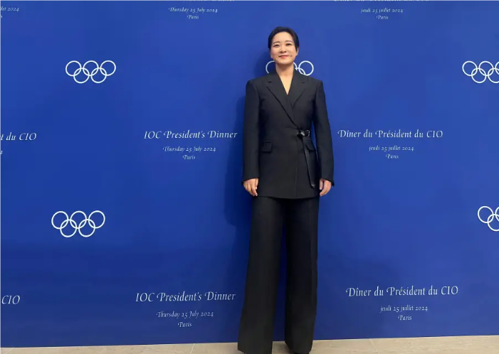 賈玲亮相巴黎奧委會主席晚宴 穿黑色西裝自信干練