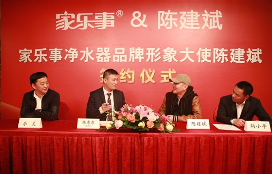 陳建斌代言家樂事凈水器十大品牌呼吁全民關(guān)注飲水健康  2017年2月25日,中國北京,影視巨星陳建斌正式簽約為家樂事凈水器形象代言人和健康大使,致力于飲水健康的推廣和普及?! ∽鳛閲鴥?nèi)影...