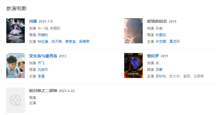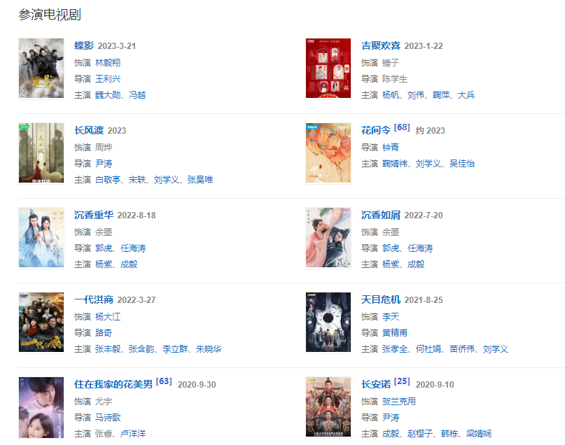 2021年,主演經(jīng)典懸疑電影《河豚》播出;825日,主演懸疑科幻劇《天目危機(jī)》芒果TV播出;同年,拍攝仙俠劇《沉香如屑》,飾演余墨。