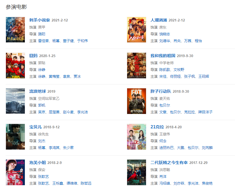 2018年主演都市情感劇《都挺好》,4月20日主演的喜劇電影《21克拉》上映。
