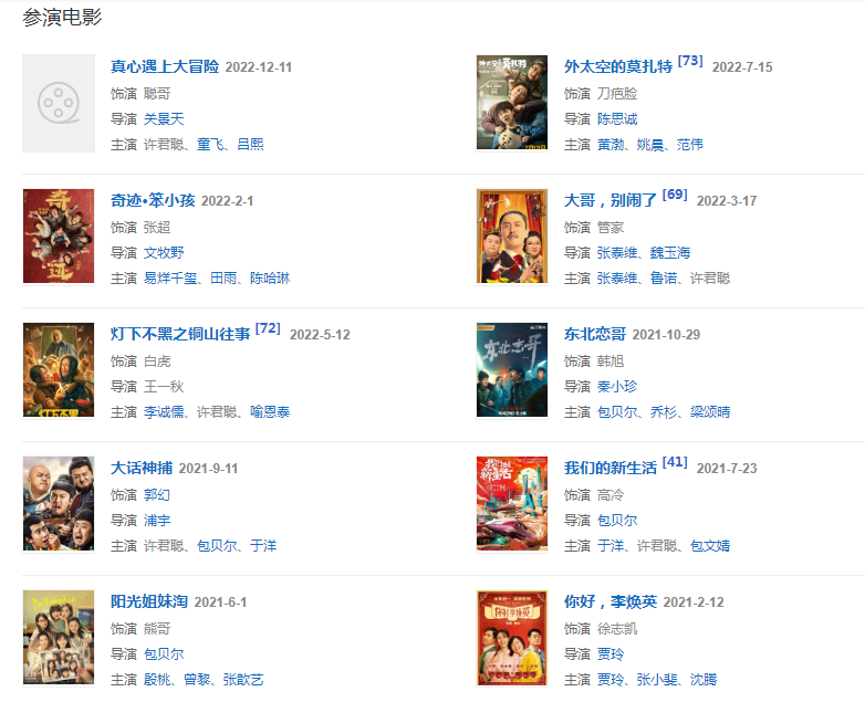 許君聰性格幽默詼諧,在喜劇表演方面能力強,他將穩(wěn)扎穩(wěn)打的演技與搞笑功底在舞臺上展現(xiàn)得淋漓盡致。無論是何種題材、何種類型的角色都能勝任,其頗具特色的外貌也讓他在駕馭角色時更加錦上添花、笑果非常。而許君聰不僅小品演的好,在影視作品和話劇舞臺上也同樣有著豐富的表演經(jīng)驗。