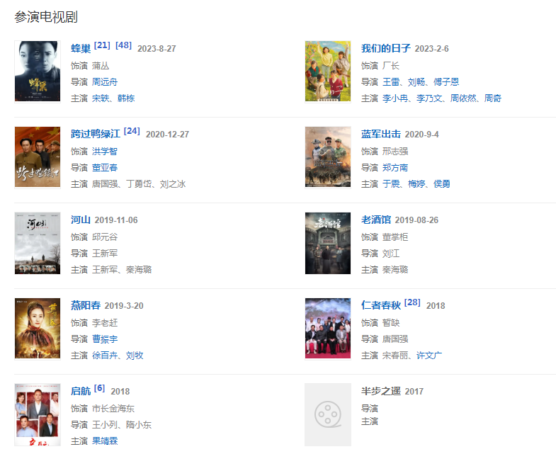 代表作品:罪域、非親姐妹、啟航、小姨多鶴、上將洪學(xué)智