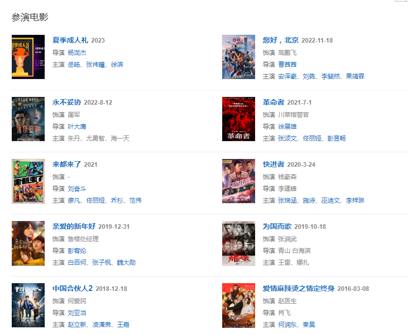 代表作品:西游記之大鬧天宮、一半海水一半火焰、有你才幸福、工人大院