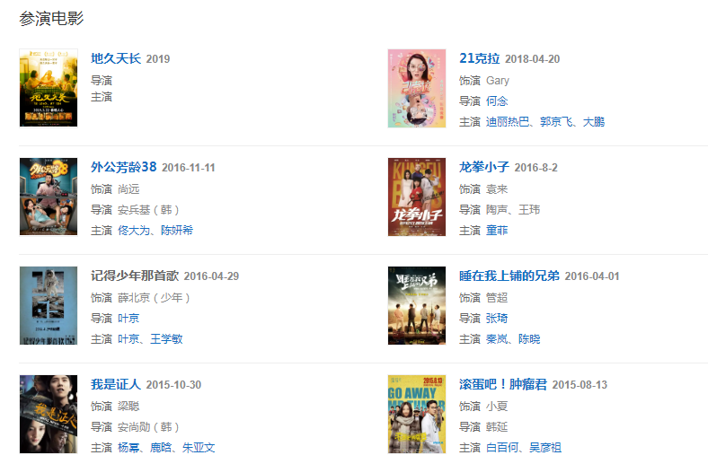 2016年,主演《睡在我上鋪的兄弟》 ;其主演《記得少年那首歌1969》及現(xiàn)代喜劇片《外公芳齡38》也相繼上映 。