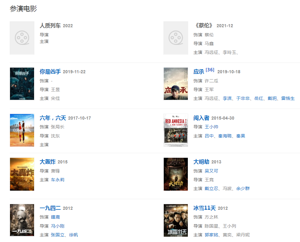 代表作品:風(fēng)雪夜歸人、最后的王爺、人到中年、不要和陌生人說話、鋼鐵年代、老農(nóng)民