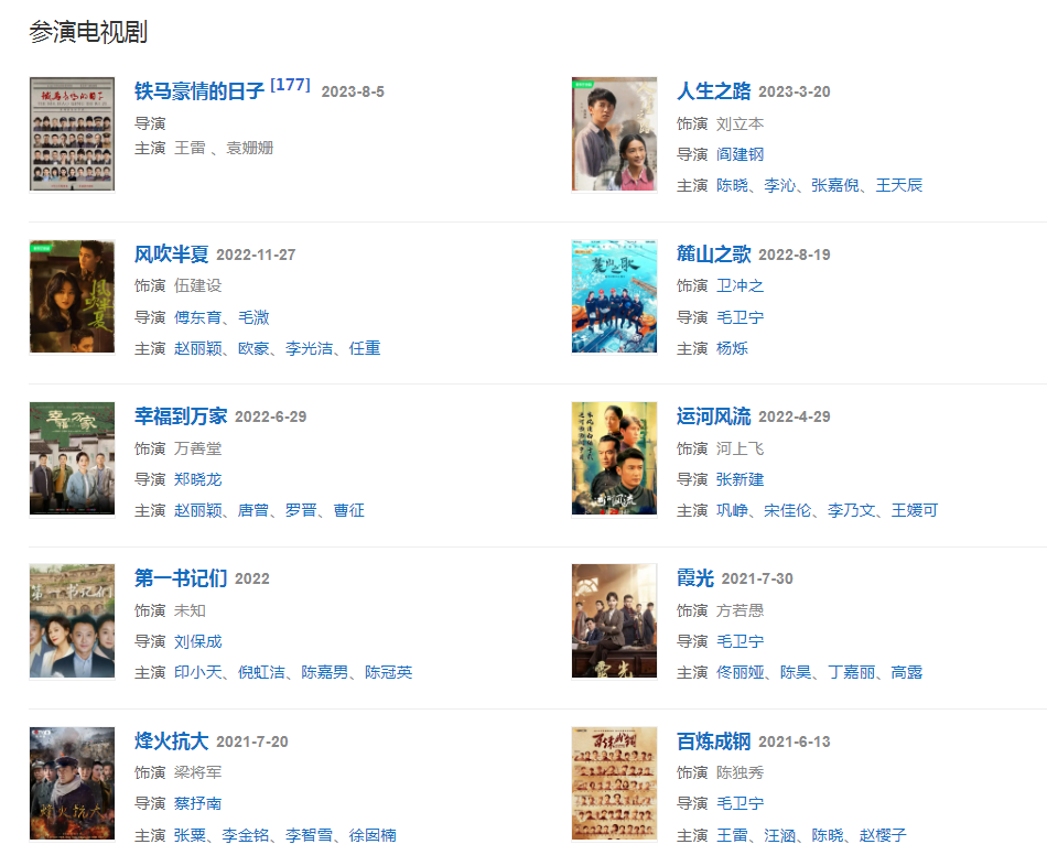 代表作品:老威的X計(jì)劃、紅娘子、我家有喜、人活一張臉、幸福到萬(wàn)家、生活萬(wàn)歲