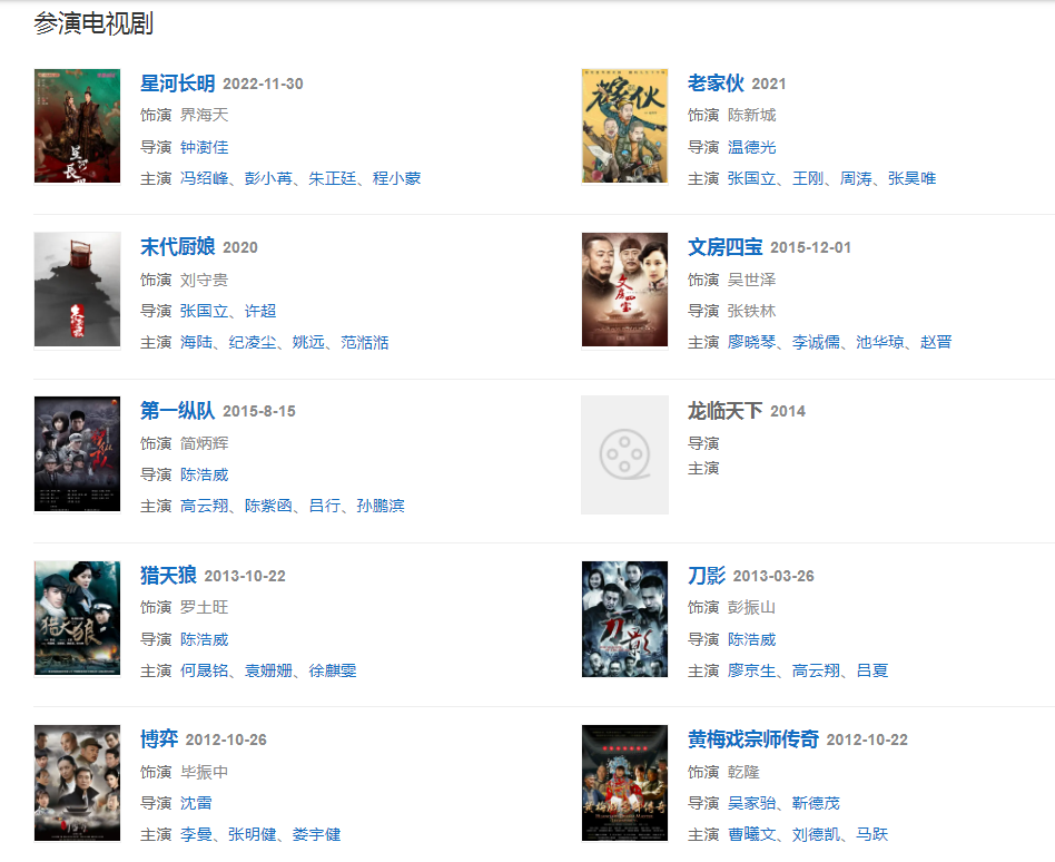 代表作品:還珠格格、鐵齒銅牙紀(jì)曉嵐、火燒圓明園、垂簾聽(tīng)政、倚天屠龍記、鐵將軍阿貴