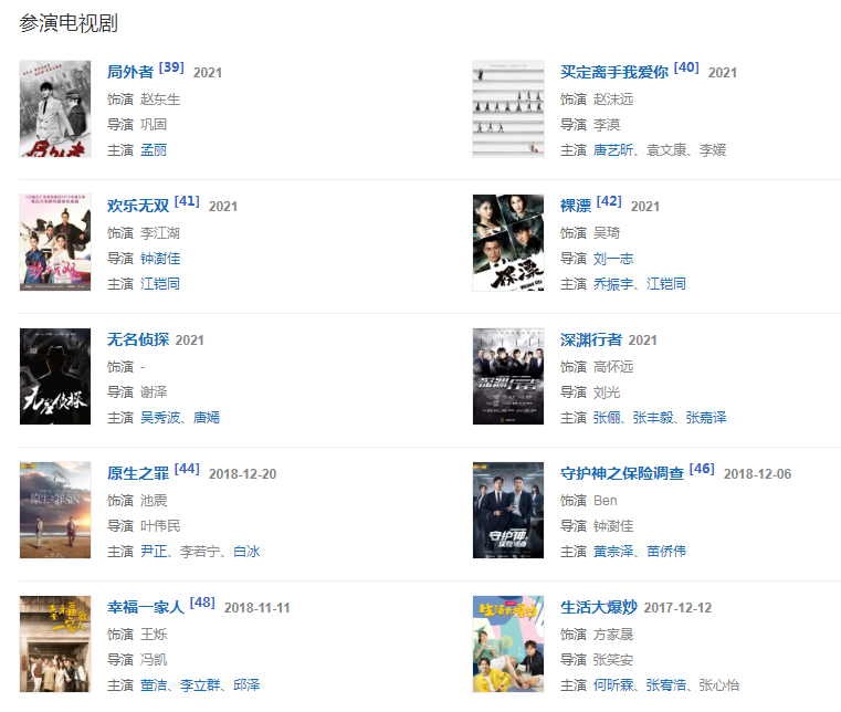 2018年,與尹正共同主演葉偉民執(zhí)導(dǎo)的刑偵劇《原生之罪》。2019年,首次參與央視春晚錄制,參演小品《“兒子”來了》。