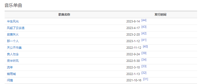 2022年1月13日,發(fā)布單曲《煙雨城》;3月10日,發(fā)布單曲《流年》。