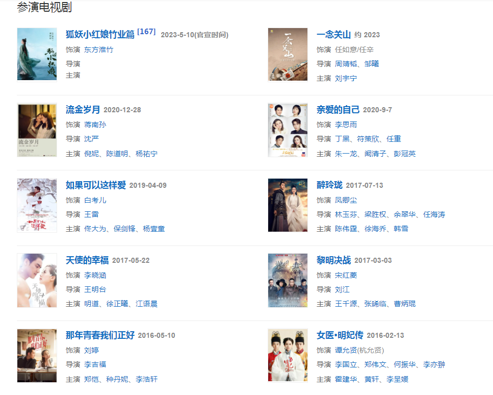 代表作品:步步驚心、軒轅劍之天之痕、流金歲月、女醫(yī)·明妃傳、怪俠一枝梅、仙劍奇?zhèn)b傳三、聊齋奇女子