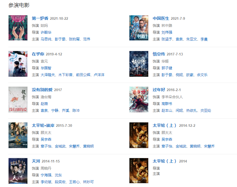 代表作品:牽手、小李飛刀、三少爺?shù)膭Α⒋笳煞?、愛之初、在乎你、策馬嘯西風(fēng)、愛有來生、大宅門2