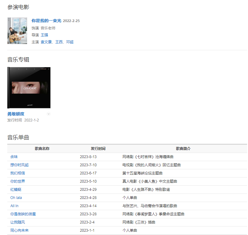 2022年1月2日,發(fā)行了個(gè)人首張專輯《勇敢額度》 ;
