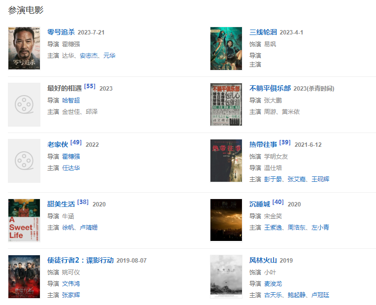 代表作品:使徒行者2:諜影行動(dòng)、親愛(ài)的,熱愛(ài)的、悍城、你是我的城池營(yíng)壘