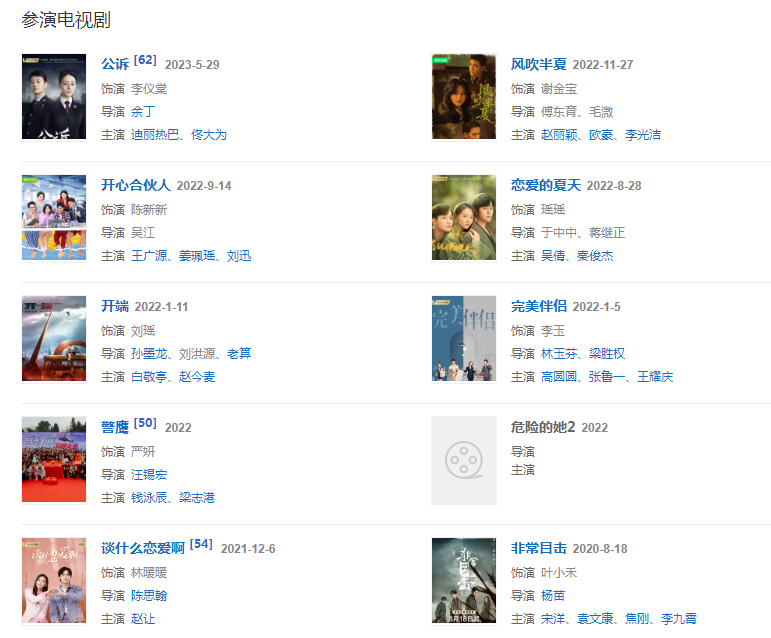 2022年1月5日,參演的電視劇《完美伴侶》播出 ;1月11日,參演的電視劇《開端》播出;5月24日,主演的電影《兄弟同體》播出; 8月28日,出演的都市愛情網(wǎng)劇《戀愛的夏天》播出;9月14日,主演的職場輕喜劇《開心合伙人》在愛奇藝播出;11月1日,參演的網(wǎng)劇《危險的她2》正式官宣 ;11月27日,出演的時代群像闖劇《風(fēng)吹半夏》播出。