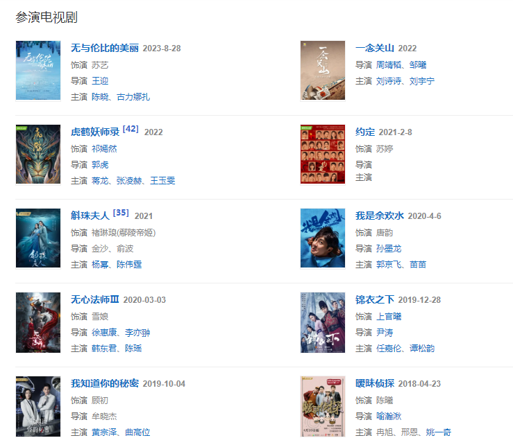 代表作品:步步驚心、繡春刀、遇見愛情的利先生、漂洋過海來看你