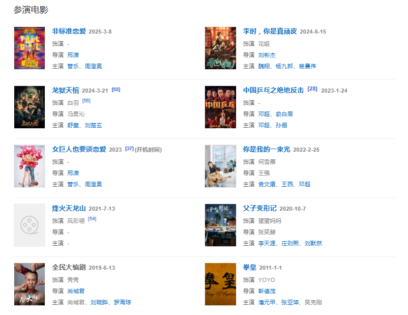 2022年,出演的愛情喜劇電影《你是我的一束光》上映;同年,參加喜劇競(jìng)演綜藝節(jié)目《一年一度喜劇大賽第二季》。